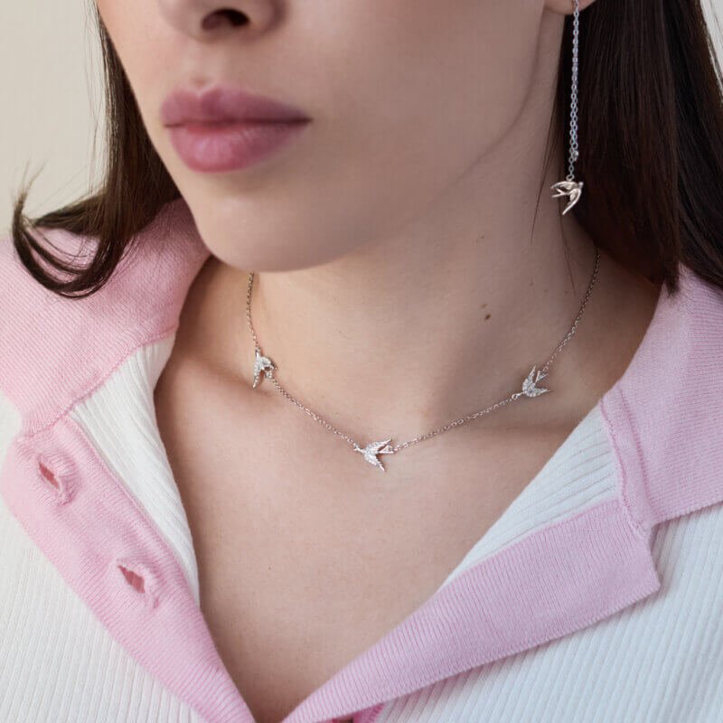 Колекція «Ластівки» представляє собою вироби із срібла у формі пташок “ластівок”. Досить цікаве рішення та ексклюзивний вигляд прикрас точно приверне увагу оточуючих.