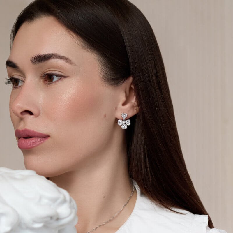 Срібне кольє “Серце” з великим та маленькими камінцями