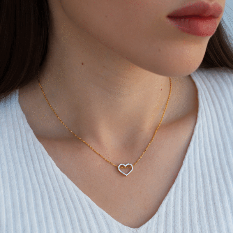 Срібне кольє та кулон «Серце» з маленьким камінням
