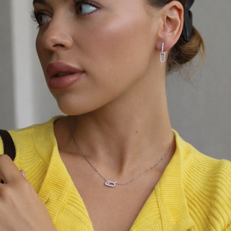 Срібне кольє та кулон «Серце» з маленьким камінням