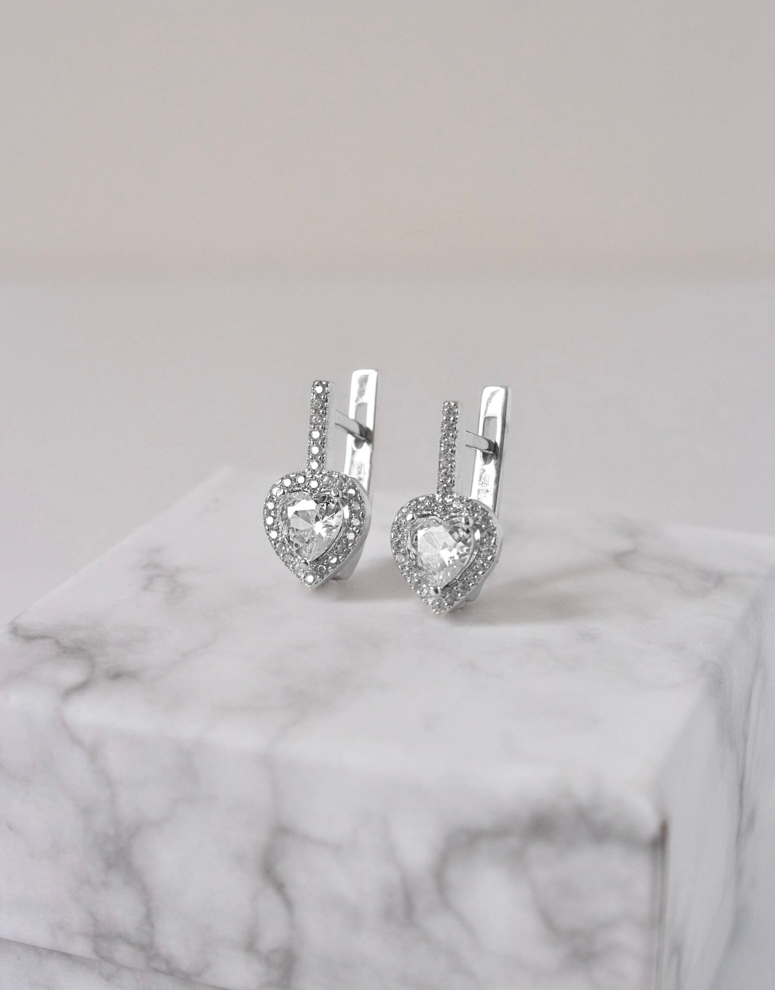 Срібні сережки Серця з білими камінцями