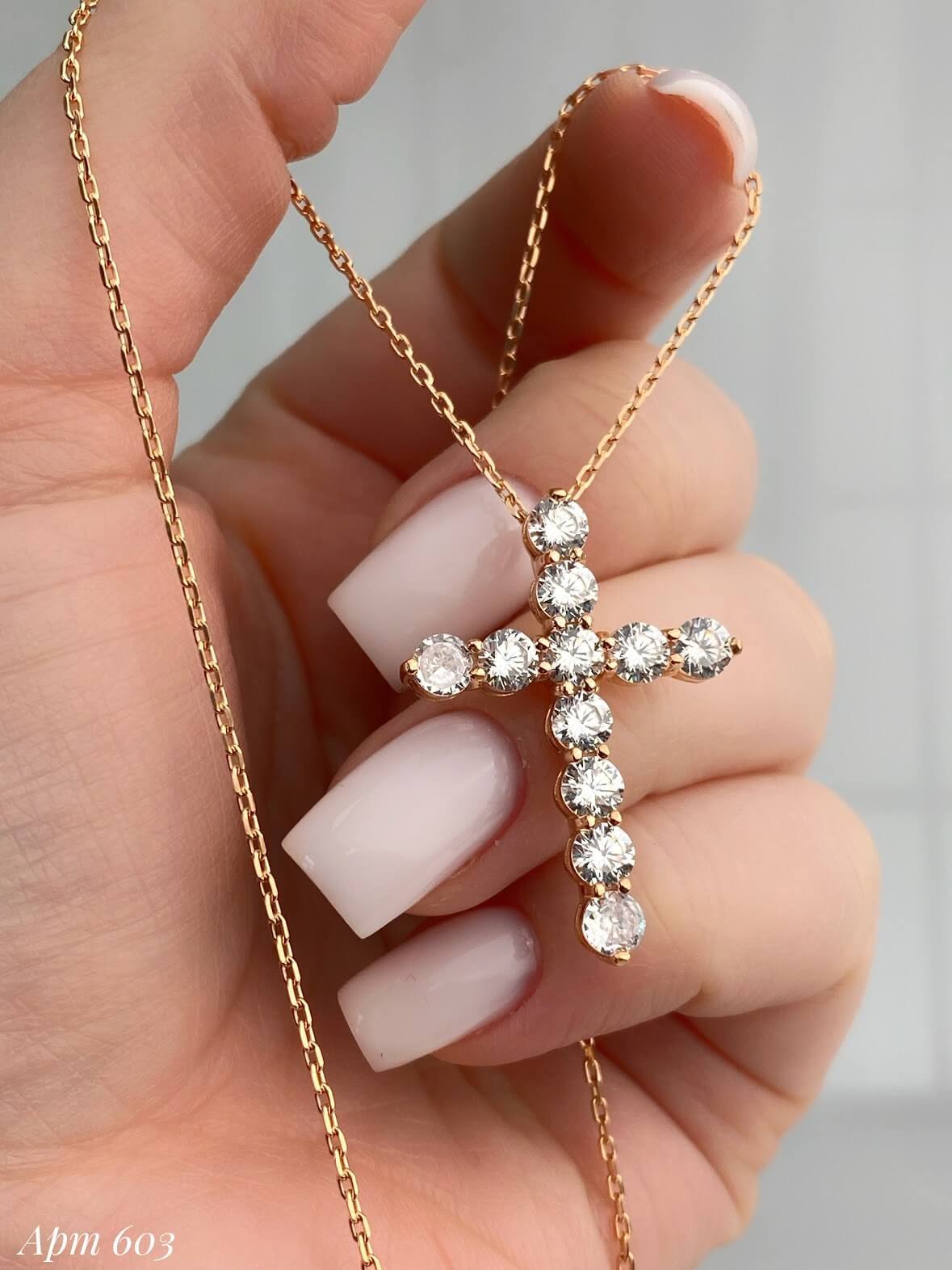 Особливої уваги заслуговує підвіска. Інкрустація кубічним цирконієм забезпечує хрестику неймовірний відблиск на сонці та під штучним освітленням. Камінь візуально нагадує діамант, хоч більш доступний за ціною. Вибравши срібне кольє собі чи в подарунок близькій людині, ви отримуєте: