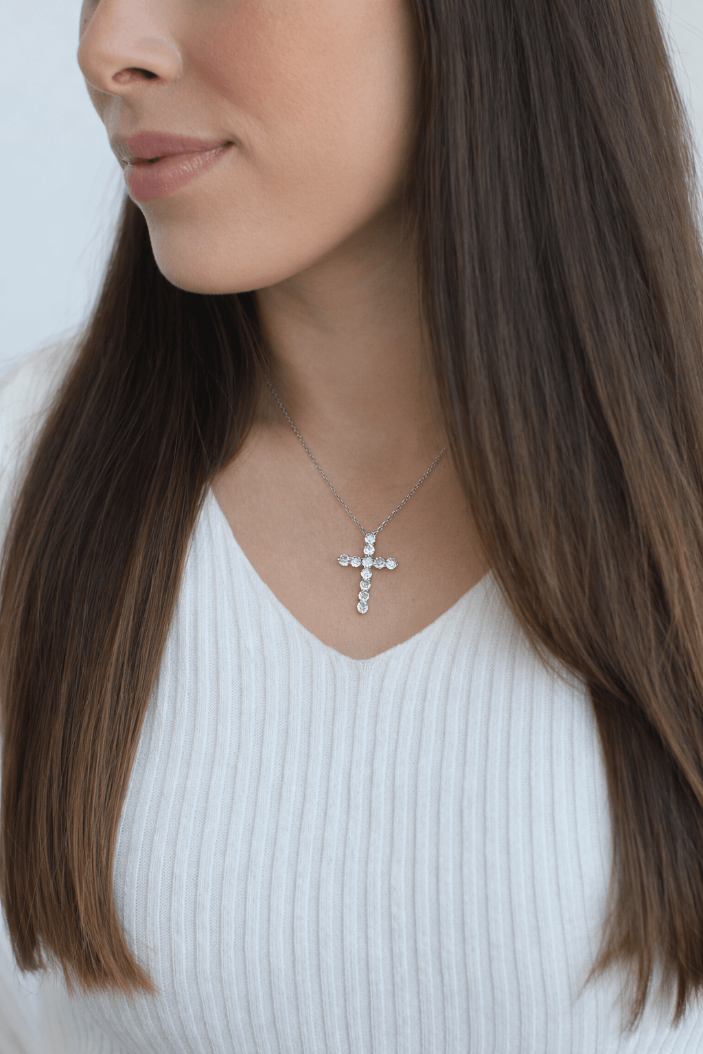 Срібне кольє з підвіскою у вигляді хрестика стане відмінним завершенням різноманітних образів. Ланцюжок виконаний у класичному плетінні з ланками овальної форми. Він стійкий до розривів та доповнений надійною застібкою. Прикраса має спеціальне покриття — родіювання. Завдяки цьому виріб захищений від потемніння та не боїться механічних пошкоджень.