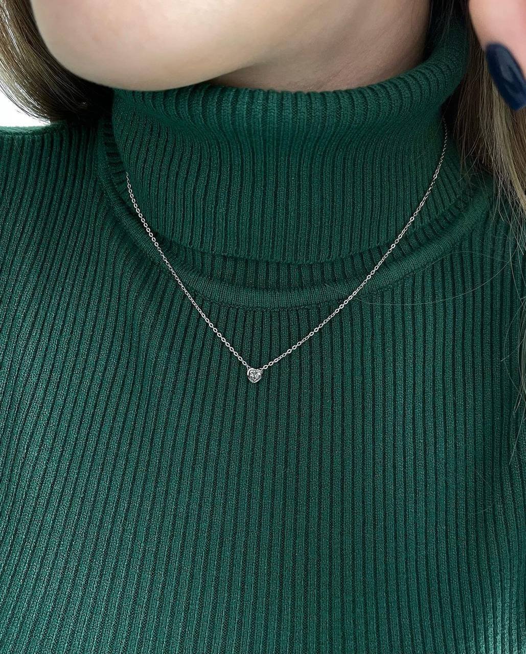 Срібне кольє виготовлене зі срібла 925 проби та має захисне покриття. Окраса ланцюжка — підвіска у формі серця, інкрустована великим каменем Swarovski. Фіаніт високої прозорості та міцності візуально нагадує діамант. При потраплянні сонячного світла на камінь він переливається ніжним світлом. Оригінальний ювелірний виріб варто додати у свою колекцію з кількох причин: