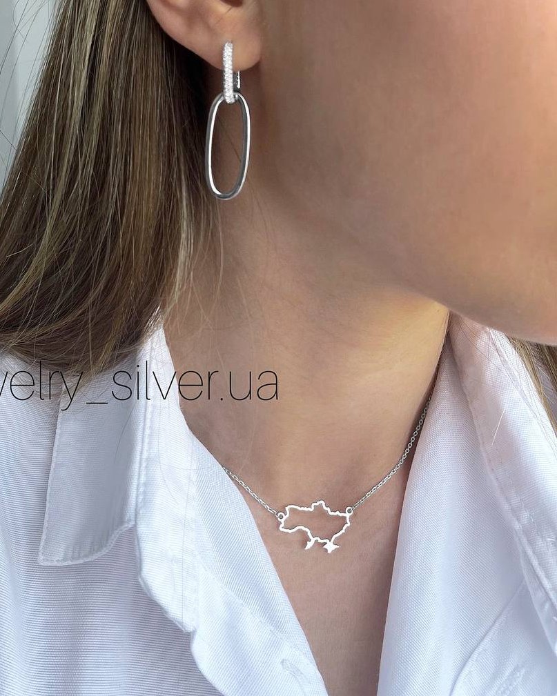 Беззаперечна родзинка кольє — підвіска у формі карти України. Відсутність додаткового інкрустування додає кольє більшої елегантності: тут немає нічого, що відволікало б увагу від самої прикраси. Кольє можна поєднувати з різним одягом: