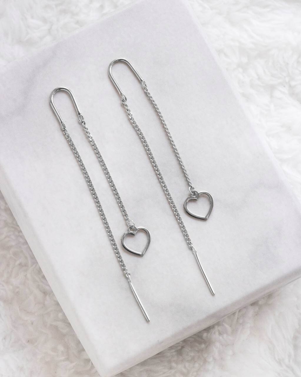 Лаконічні срібні сережки-протяжки з декоративним елементом у формі серця відмінно пасуватимуть до повсякденних та святкових нарядів. Не важливо, чи ви полюбляєте класику, чи надаєте перевагу зухвалим образам — прикраса допоможе завершити look. Ювелірний виріб виготовлений зі срібла 925 проби та має шар додаткового покриття. Таким чином він не покривається темними плямами.