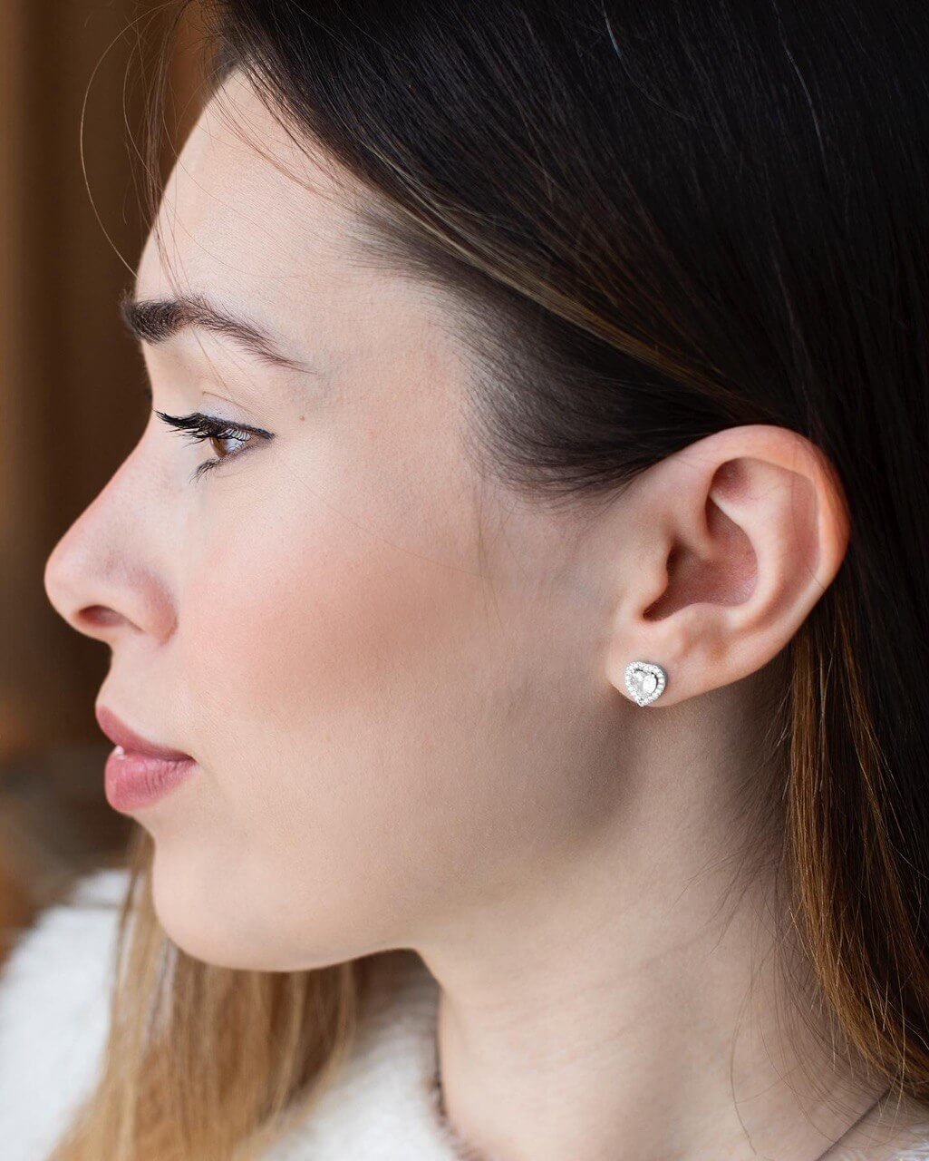 Срібні сережки-пусети у формі серця — це поєднання лаконічної та яскравої прикраси. Виріб зроблений зі срібла 925 проби та додатково покритий родієм. Цей шар захищає сережки від потемніння, спричиненого контактом зі шкірою та навколишніми чинниками.