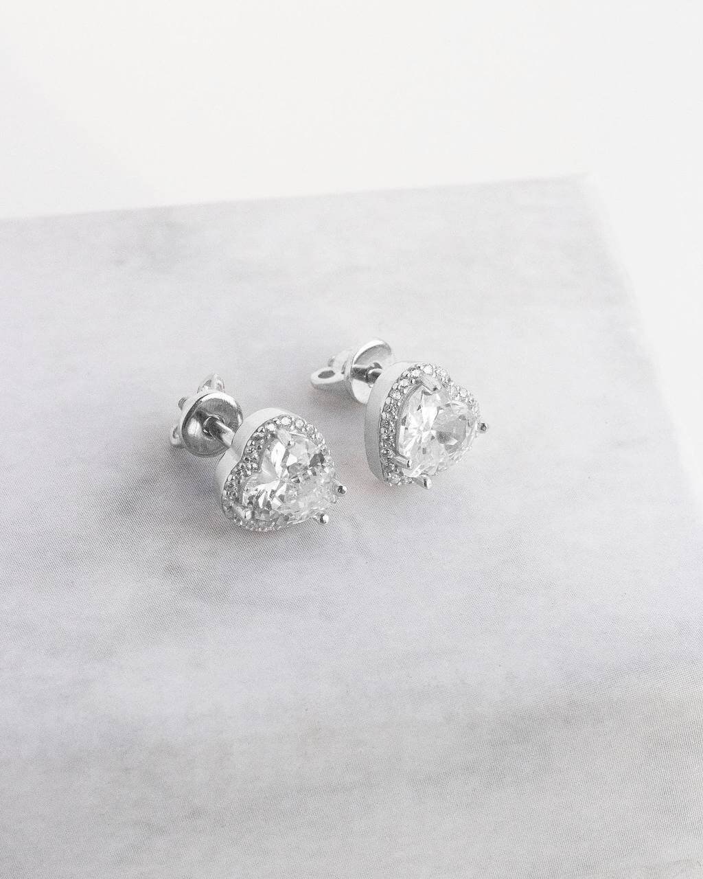 Немає нічого ніжнішого, ніж лаконічні сережки-цвяшки у формі серця. Прикраса зі срібла 925 проби з родіюванням захищена від негативного впливу зовнішнього середовища. Виріб не боїться вологи чи тривалого контакту зі шкірою. Застібка закручування міцно утримує прикрасу на мочці вуха. З сережками можна спокійно ходити в спортзал, бігати, займатися танцями — вони надійно закріплюються на вухах.