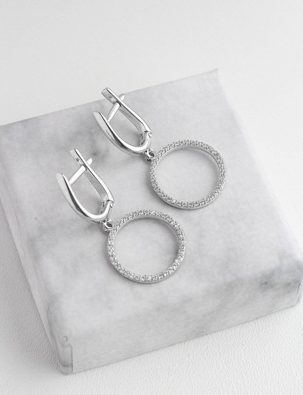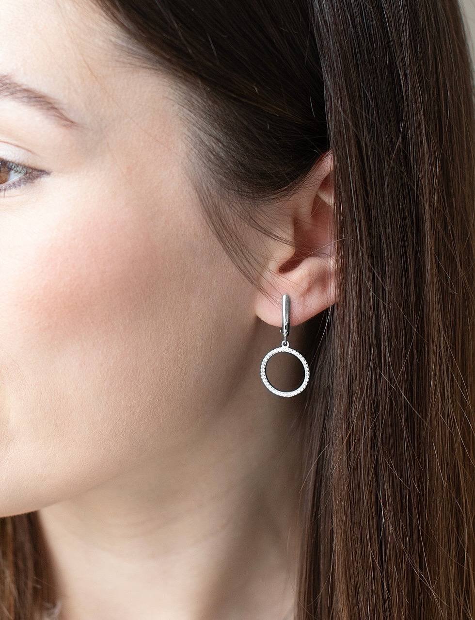 Кругла прикраса оздоблена дрібними камінчиками з кубічного цирконію. За характеристиками камінь нагадує діамант, хоча набагато доступніший за вартістю. Сережки у геометричному стилі підходять для завершення різноманітних образів. Вони стануть відмінним подарунком завдяки своїм перевагам: