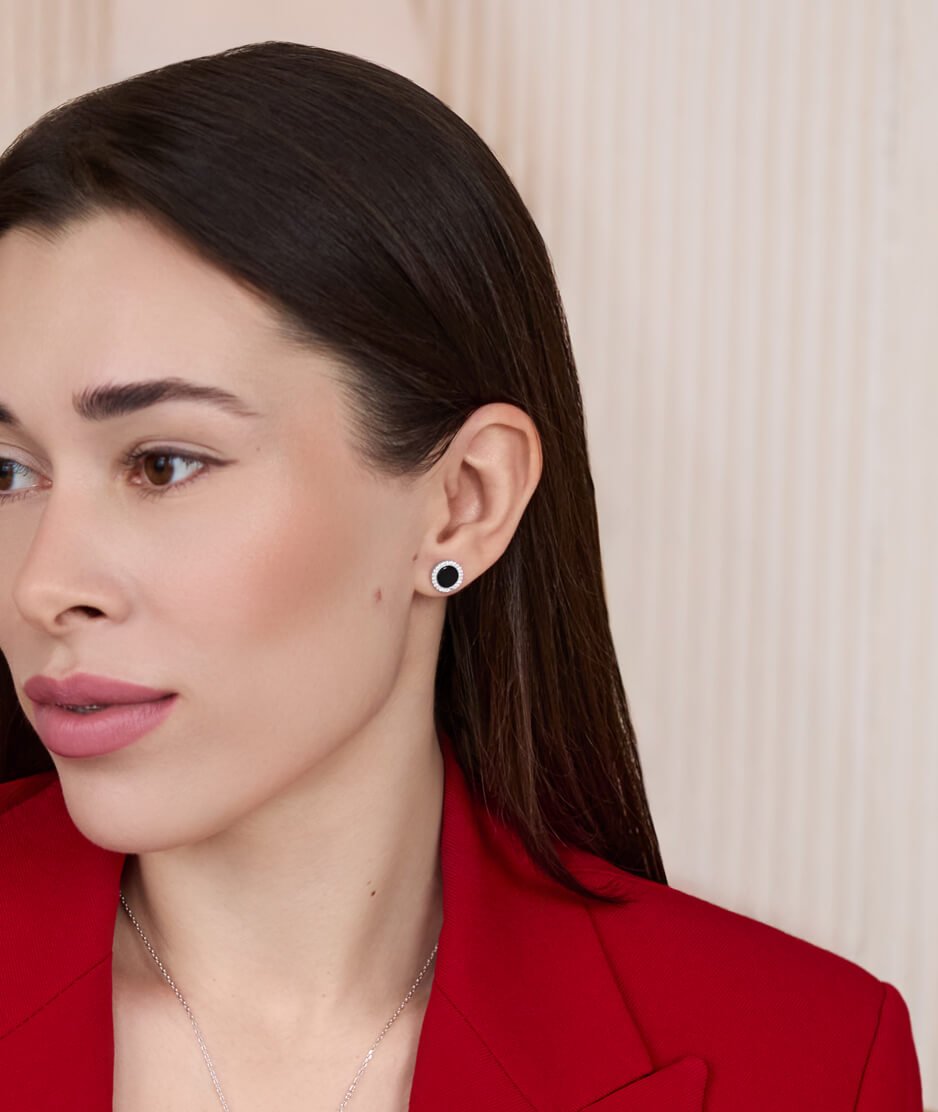 По краю оніксу розташоване коло дрібних кубічних цирконіїв, які додають сережкам вишуканого блиску та візуальної розкоші. Поєднання чорного оніксу та прозорих цирконіїв створює стильний контраст. Завдяки своєму стриманому, але виразному дизайну, ця модель стане чудовим доповненням до класичних, ділових і вечірніх образів, підкреслюючи чудовий смак своєї власниці.