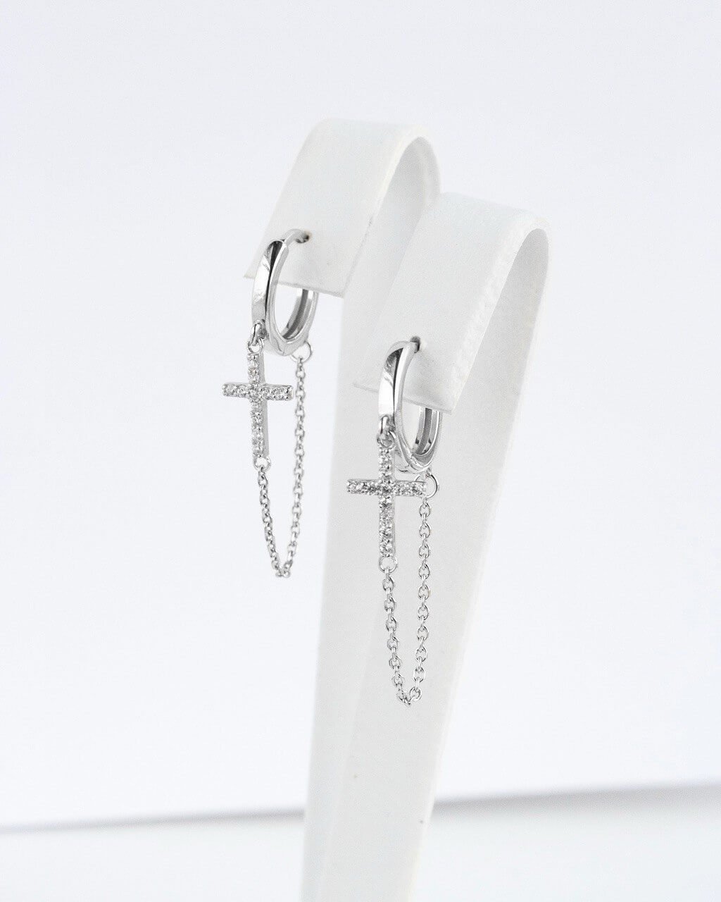 Завдяки поєднанню мінімалістичної форми кілець, витонченості ланцюжків і символічного значення хрестиків, сережки виглядають стильно та універсально. Вони підходять як для повсякденного образу, так і для особливих випадків.