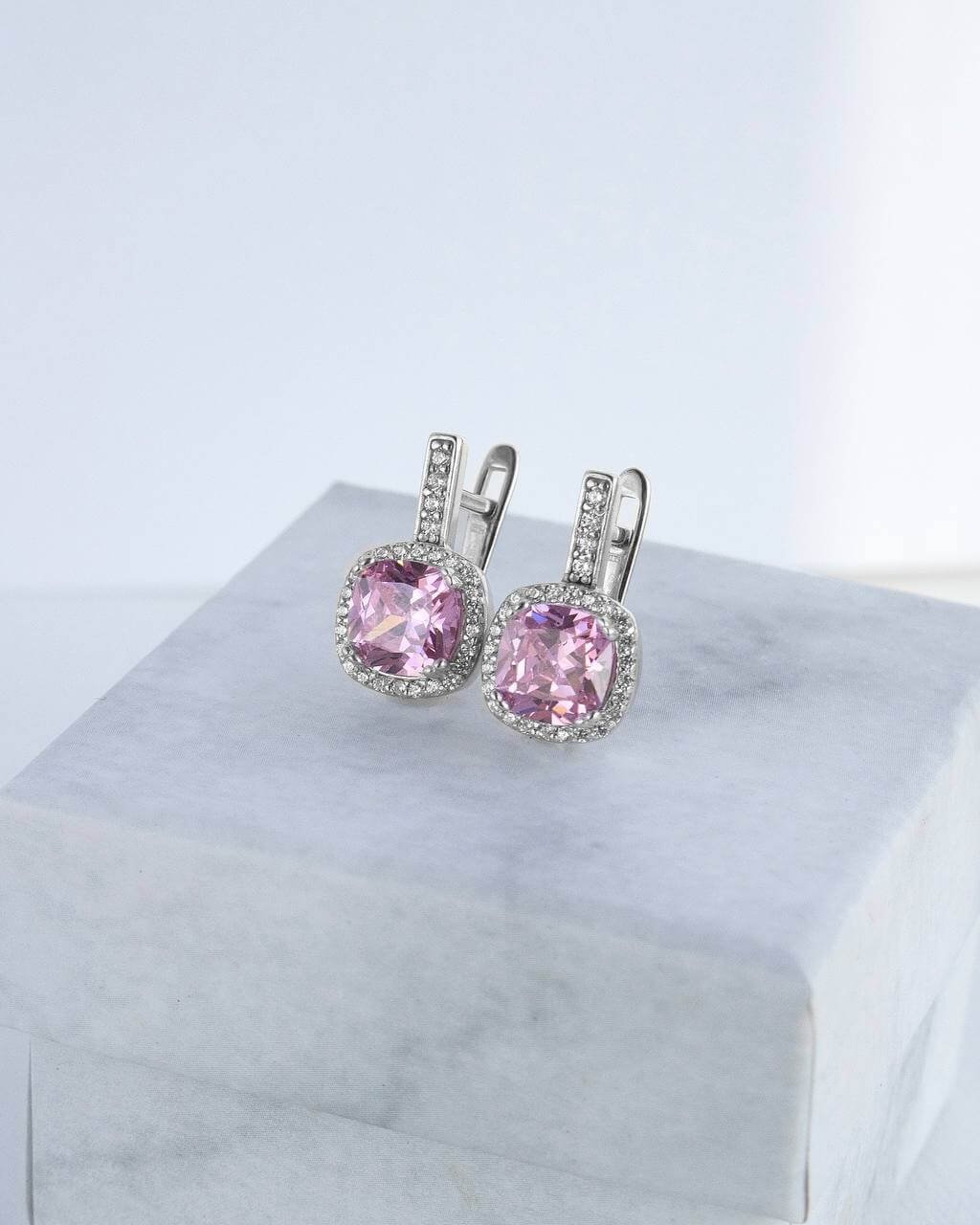 Срібні сережки з рожевим камінцем