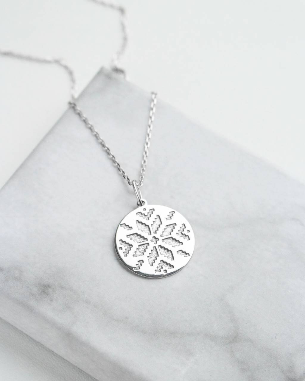 Лаконічні срібні сережки без слів допоможуть розповісти про національність їхньої власниці. Прикраса поєднує етнічні мотиви та сучасний стиль. Вона ідеально доповнить стилізовані національні вбрання та традиційні вишиті костюми. Сережки виготовлені зі срібла 925 проби та мають покриття з родію, яке захищає метал від потемніння та утворення механічних пошкоджень.