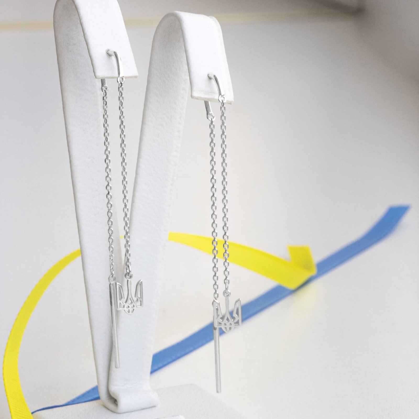 Срібні сережки протяжки Герб України